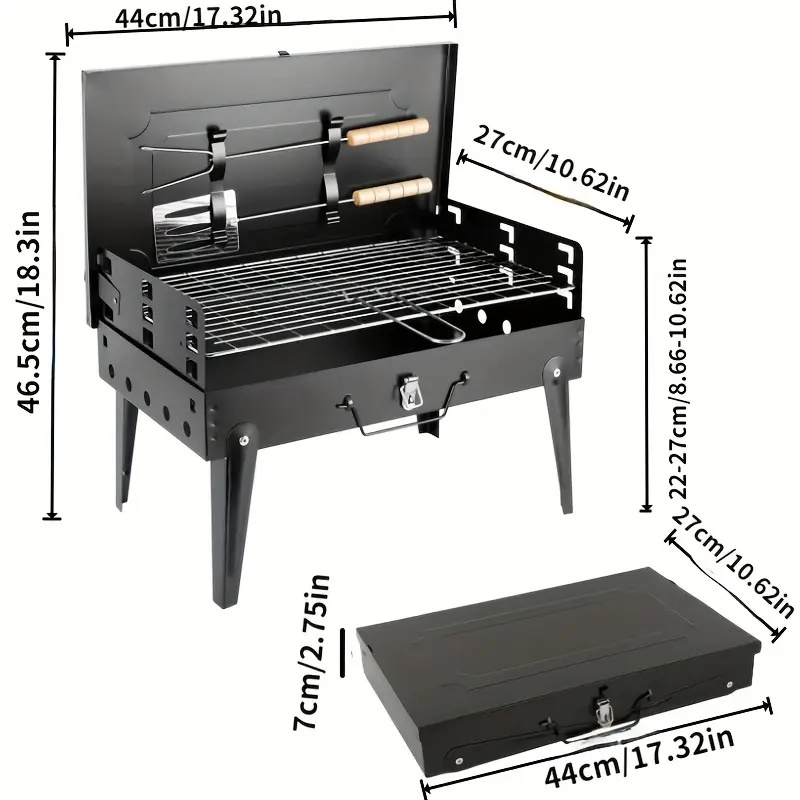 The multifunctional cover of the portable charcoal grill can not only be used to block the wind and dust when it is open, don't have to worry about getting dirt in your food and stinging eyes from smoke, but the cover with a buckle design can also be used to fix barbecue tools, such as forks and spades, which is very convenient.[Advanced Folding Design Portable Grill]The portable grill charcoal adopts an advanced folding design, saves space, and is super easy to set up! Forget screws and tools, simply unfold the legs on both sides, and you’ll have a stable and portable BBQ grill ready. Enjoy the ultimate cookout experience anywhere and anytime! Thanks to the handles and compact size, it is easy to carry and take away, perfect for camping, picnics, beach, or barbecue party at least 3-5 people at a time.[Innovative 3 Adjustable Heights BBQ Grill]Our small charcoal grill can adjust the grilling net through three heights (high, medium, and low) to control different firepower, easier to cook more delicious and tasty food. Get together with your families, and friends to have fun with BBQ grill charcoal cooking and grilled flavor.[Larger Cooking Area Charcoal Grill]This small BBQ grill with a surface of over 167 sq. inches, you’ll easily be able to grill for a party of 3 or more, with plenty of room for you to grill meat and vegetables at the same time. Meanwhile, our barbecue grill charcoal includes a wealth of grilling accessories to give you a better grilling experience without the need to purchase additional tools, very convenient and highly valuable.[Superior Camping Grill & Excellent Service]The small outdoor grill is supported by a sturdy heat-resistant frame that also features side air vents to get your charcoal burning better, which is heat and scratch resistant, ensuring that the BBQ grills won't rust and be easy to clean after a long time of use. Each small grill includes a 36-MONTH WARRANTY. All you need to do is send us an email and our unparalleled 24/7 customer support is ready to help you.