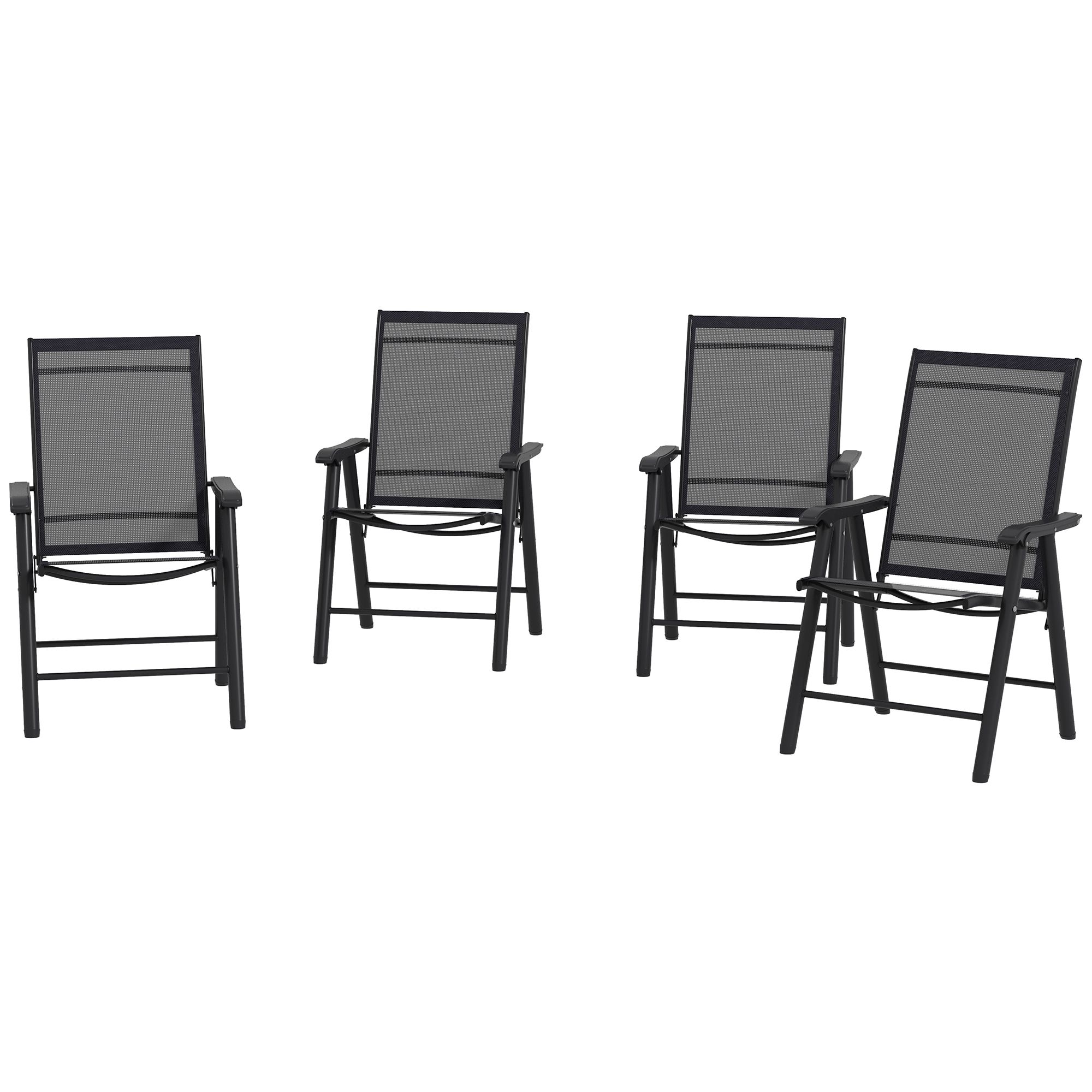 Take a seat anywhere. No, really, I mean anywhere. Outsunny offers a compact, lightweight, and foldable chair set you can use across an array of outdoor events. Seat four adults. Bring friends along and enjoy camping, concerts and cookouts together. Enjoy the outdoors even more with a quick seat. Keep cool in the summertime with a breathable sling backrest. Keep comfortable with armrests to the side. With outdoor folding chairs kept conveniently in your trunk or garage, you're ready for guests.