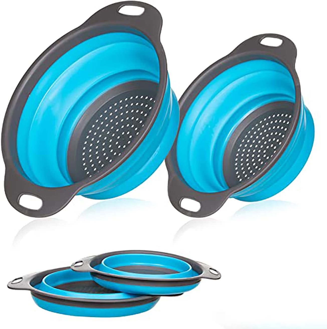 Home > Collapsible Colander Silicone Bowl Strainer Set of 2, Portable Folding Filter Basket Bowls Container Rubber Strainer, Use for Draining Fruits