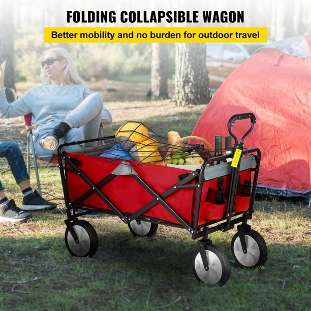 3.Easy to Fold/Unfold: No assembly is required. It can become extremely compact in simple steps, allowing you to store it in the trunk of your car! With this wagon cart's help, you can get rid of backache from carrying too much stuff.