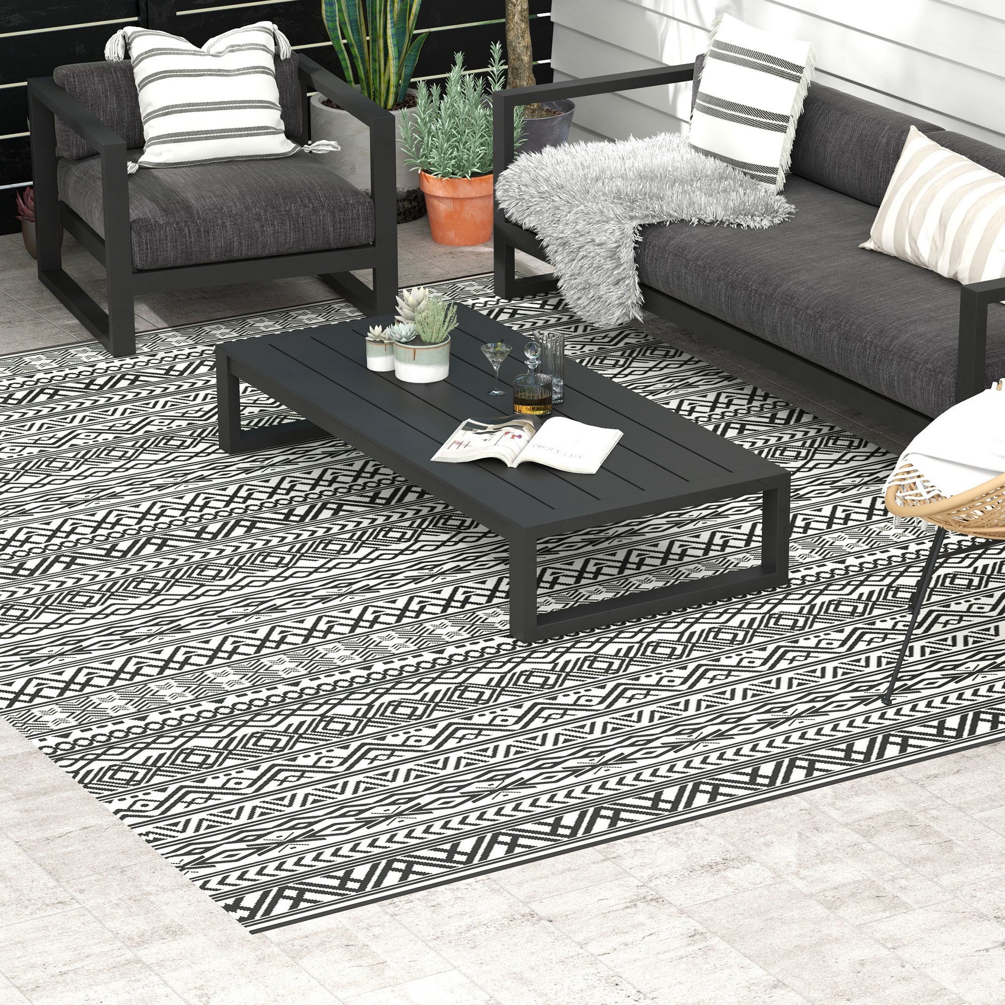 Plastic Outdoor Rug: Our waterproof outdoor rug / RV mat features a reversible pattern that you can flip over for a quick, clean spot with an all new style.