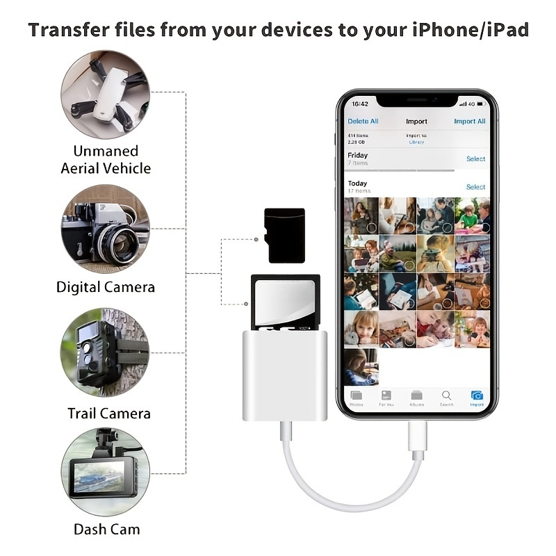 Sd Card Reader For IPhone IPad Camera; Dual Card Slot Memory Card Reader Supports SD And TF Card Trail Camera Viewer Sd Card Adapter Portable Sd Card Reader For IPhone IPad Camera; Dual Card Slot Memory Card Reader Supports SD And TF Card Trail Camera Viewer Sd Card Adapter Portable Sd Card Reader For IPhone IPad Camera; Dual Card Slot Memory Card Reader Supports SD And TF Card Trail Camera Viewer Sd Card Adapter Portable