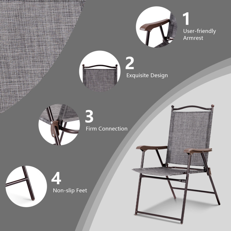 Set of 2 Patio Folding Sling Back Camping Deck Chairs